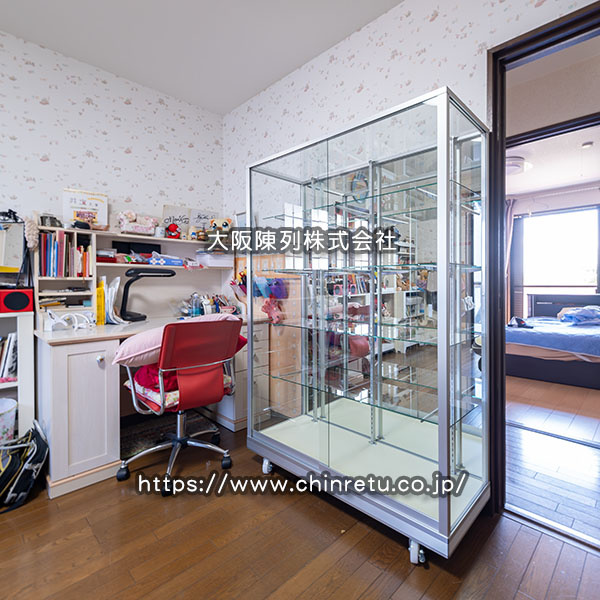 個人のお客様 011 「フィギュア/スタチュー展示用コレクションケース(フィギュアケース)」としてのキャスター付きアルミ枠ガラスショーケースの製作販売実例(通販可) |