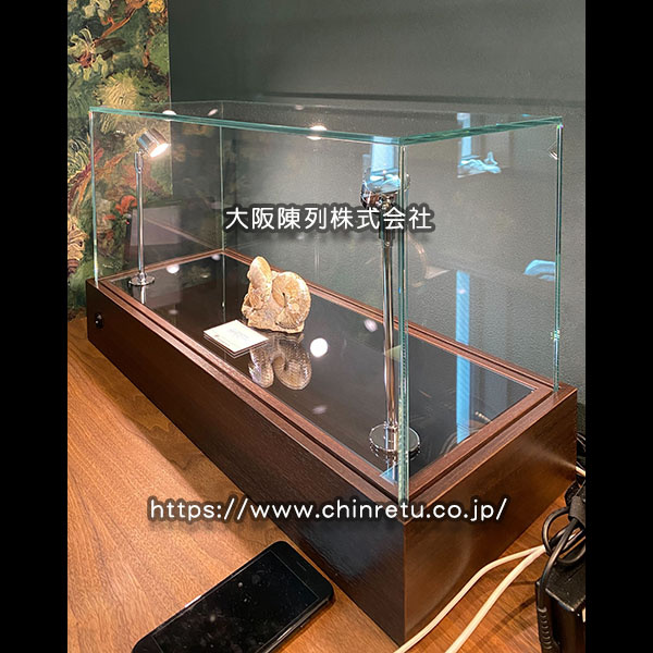 個人のお客様 004 コレクションルーム設置用「化石展示用コレクションケース」としてのスポットライト付き/フルオーダー猫脚ガラスショーケース(猫足ケース)の製作販売実例(通販可) |