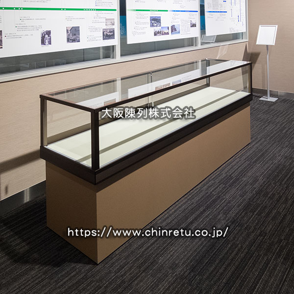 083 歴史的公共施設への「資料展示用ショーケース(資料ケース)」としての高性能LED照明付きカウンターケース型アルミ枠ガラスショーケースの製作販売実例(通販可) |