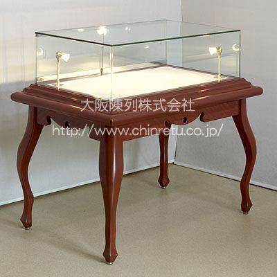 ショーケースとコレクションケースの大阪陳列株式会社|おしゃれなテーブル型猫脚コレクションケース|スポットライト付きの猫脚ショーケース |