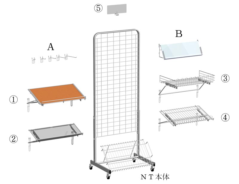 かなり応用範囲の広い、自立型ネット什器です。(NT60、NT90) |