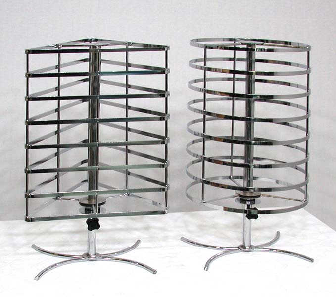 | ・丸型卓上回転スタンド(フラットバータイプ)と、三角卓上回転スタンド(フラットバータイプ)のカラーは共に、クロームメッキのみ御座います。 | ||