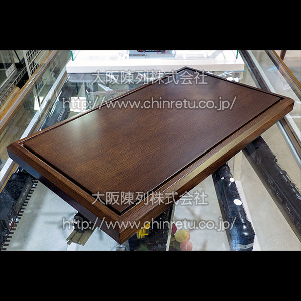 ある神宮様の施設に展示中の置物(美術品)をより美しく見せつつ、ホコリ等から保護するためとしてご依頼を頂きました「ガラスカバーかぶせ式卓上ケース」の土台です。 現在はガラスカバーを製作中でして、もう少しで完成致します。 今回はお客様のご希望で、どっしりとした感じを出すために土台を少し厚めに製作致しております。 また、設置場所の雰囲気に合わせて「少し薄めの焦げ茶」で仕上げております。(当社の「通常の焦げ茶」ですと、もう少し色が濃くなります。) 写真では分かりにくいとは思いますが間口が600mm以上ございまして、ガラスカバー方式の卓上ケースと致しましては大きめの部類です。 サイズや塗装色を変更して製作する事はもちろん、照明を取り付けたり、背面をミラーガラスにして製作する事も出来ますので、ショーケース/コレクションケースの製作をお考えの方は、お電話/FAX/サイトのフォームからお気軽にご希望の仕様をお伝え下さい。 |