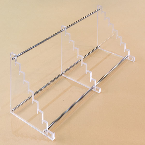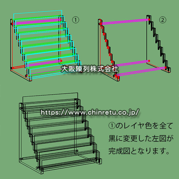 昨日に製作途中の写真をご紹介致しました「ホビーショップ様分/間口800mmタイプの当社特製ひな壇」が出来上がりましたので、完成写真をご紹介致します。 実際に鉄道模型を並べて写真を撮りたかったのですが、今回の製品は当社ショールーム展示分では無く「お客様分」ですから、そこはグッと我慢をして撮影に臨みました。(笑) 透明感/高級感が有って良い感じと思いませんか? 今回の「ひな壇」は外寸が900mmのショーケースに収まる様に製作致しておりますので間口が800mm程度になっておりますが、間口1,800mmのガラスショーケースに収まる寸法の「ひな段」を製作する事も出来ます。 今回は「Nゲージ用」として製作致しておりますが、「HOゲージ用」「Zゲージ用」等々も製作出来ますし、鉄道模型以外の展示物に対応した物も製作出来ます。 「展示物をより美しく見せて、ご覧になる人を魅せる」という事に関しましては大阪陳列株式会社の得意分野ですから、ガラスショーケース/コレクションケースだけでなく、今回の様な「魅せる」に関わる什器全般をデザインして製作する事が出来ます。 ※現在、当社には実用上問題の無い傷や汚れの有るショーケース/コレクションケースが色々とございまして、それらは「超特価処分価格」にてお買い求め頂けますので、お電話/FAX/お問い合わせフォームからお気軽にお問い合わせ下さい。 |