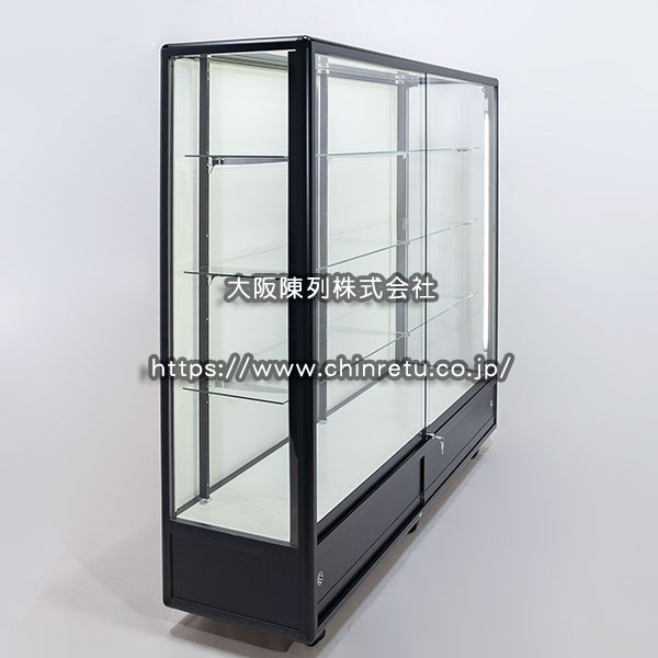 前回の投稿に続きまして、「製品サンプル展示用ショーケース(製品サンプルケース)」としてのアルミ枠ガラスショーケースの製作実例の写真をもう1枚ご紹介致します。 この写真は、ショーケース以外の照明を消灯して、ショーケースに取り付けた照明のみを点灯した1枚でして、照明効果が非常に分かりやすい1枚になっていると思います。 両サイド縦方向に照明を取り付けておりますので、ショーケース内部の製品サンプルが非常に明るく見やすくなっております。 また、背面に白の化粧シートを施工致しておりますので、背景が透けて見えずに製品サンプルがより見やすくなっております。(照明効果も上がります。) 棚板の高さは25mmピッチで自由に変更出来ますし、着脱も容易に行えます。 この製作販売実例はW1,800×D450×H1,850mmですが、この様なアルミ枠ガラスショーケースは標準で様々なサイズをご用意致しております。 詳しくは以下の「大阪陳列株式会社/デラックスショーケース(Z)」をご覧下さい。 >> 大阪陳列株式会社/デラックスショーケース(Z) 当社は「展示物を魅力的に見せるのが仕事」ですから、常に様々な照明を「吟味」致しておりますので、当社にお任せ下さいましたら「展示物がより魅力的に見えるショーケース/コレクションケース」を製作させて頂きます。 以下のページで、ショーケース内部に取り付けた高性能な照明器具による照明効果を写真でご覧頂けます。 >> 高性能照明器具による「照明効果」の実例 ※現在、当社には実用上問題の無い傷や汚れの有るショーケース/コレクションケースが色々とございまして、それらは「超特価処分価格」にてお買い求め頂けますので、お電話/FAX/お問い合わせフォームからお気軽にお問い合わせ下さい。 |